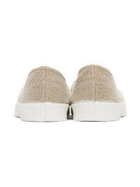Low-top linen canvas slip-on sneakers in beige. · Round rubber cap toe · Elasticized gusset at vamp · Eyelets at inner side · Canvas lining · Treaded rubber sole Supplier color: Beige Upper: textile. Sole: rubber. Made in Slovakia (Slovak Republic) 231818F128034