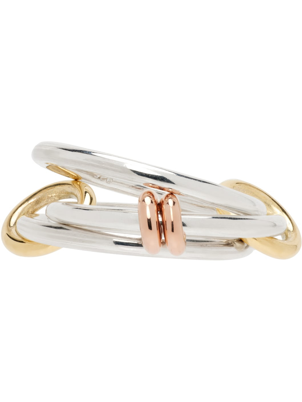 Handcrafted stacked rings in sterling silver. · Connecting hoops in 18k yellow gold · O-rings in 18k rose gold · Hallmarking at inner band Supplier color: Silver/Gold 925 sterling silver, 18k gold. Made in United States 252558F011038