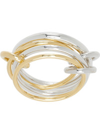 Handcrafted stacked rings in 18k gold and sterling silver. Connecting hoops at length. Supplier color: Yellow gold/Silver 18k gold, 925 sterling silver. Made in United States 252558F011014