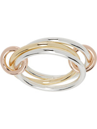 Connected and stacked band rings in sterling silver and 18k yellow gold. · Connecting hoops in solid 18k rose gold · Hallmarking at inner band Supplier color: Silver/Gold 925 sterling silver, 18k gold. Made in United States 261558F011008