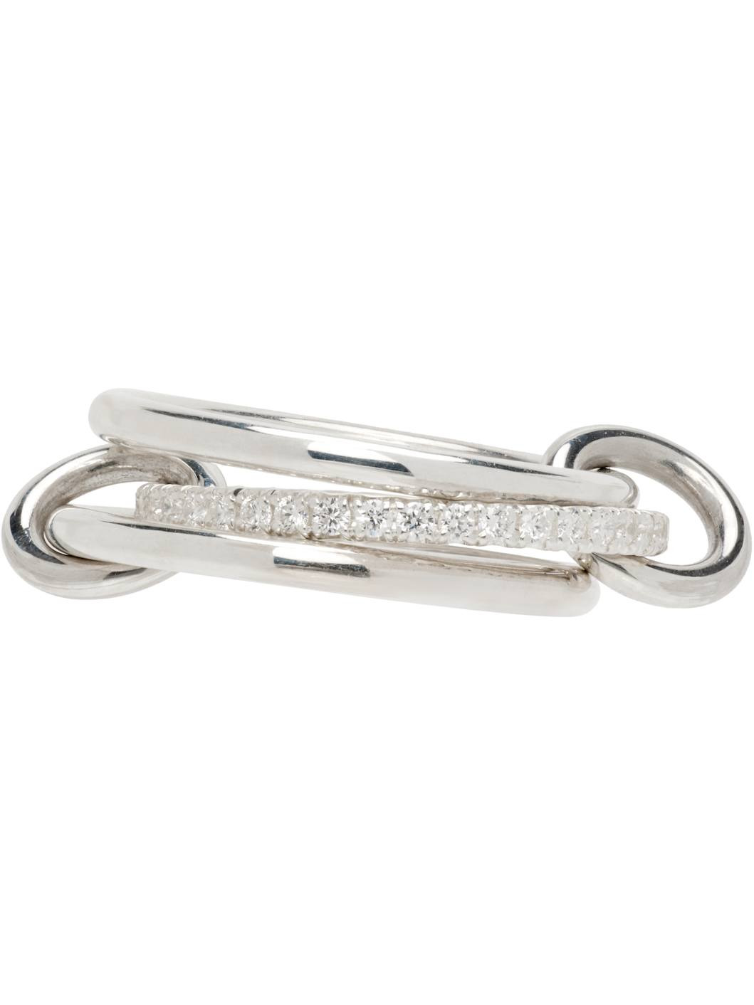 Handcrafted stacked rings in sterling silver. · Connecting hoops at length · Pave-set 0.50 cttw diamonds · Hallmarking at inner band Supplier color: Silver 925 sterling silver, diamond. Made in United States 252558F011028