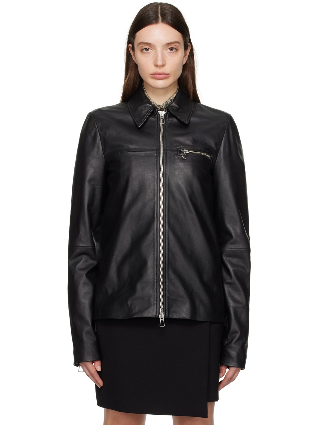 Washed grained nappa lambskin jacket. · Paneled construction · Spread collar · Two-way zip closure · Zip pocket · Zip vent at cuffs · Crystal-cut accent at back collar · Full satin lining Supplier color: Black Body: 100% lambskin. Lining: 97% polyester, 3% elastane. Made in India 241301F064000