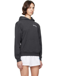 Garment-dyed 11.5 oz cotton fleece hoodie. Fading throughout. · Pre-shrunk · Logo printed at chest · Kangaroo pocket · Rib-knit hem and cuffs · Dropped shoulders · Text printed at back Supplier color: Faded black/White 100% cotton. Made in United States 252446F097004