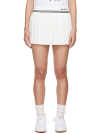 Viscose crepe miniskirt. Knife pleats throughout. · Embroidered logo and stripes at elasticized waist · Concealed zip closure at side · Polyester crepe lining Supplier color: Off-white Body: 100% viscose. Trim: 97% polyester, 3% elastane. Lining: 100% polyester. Made in China 242446F090000