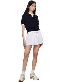 Cotton poplin miniskirt. Knife pleats throughout. · High-rise · Logo embroidered at front waistband · Concealed zip closure at side seam · Unlined Supplier color: White/Dark navy 100% cotton. Made in Portugal 251446F090004