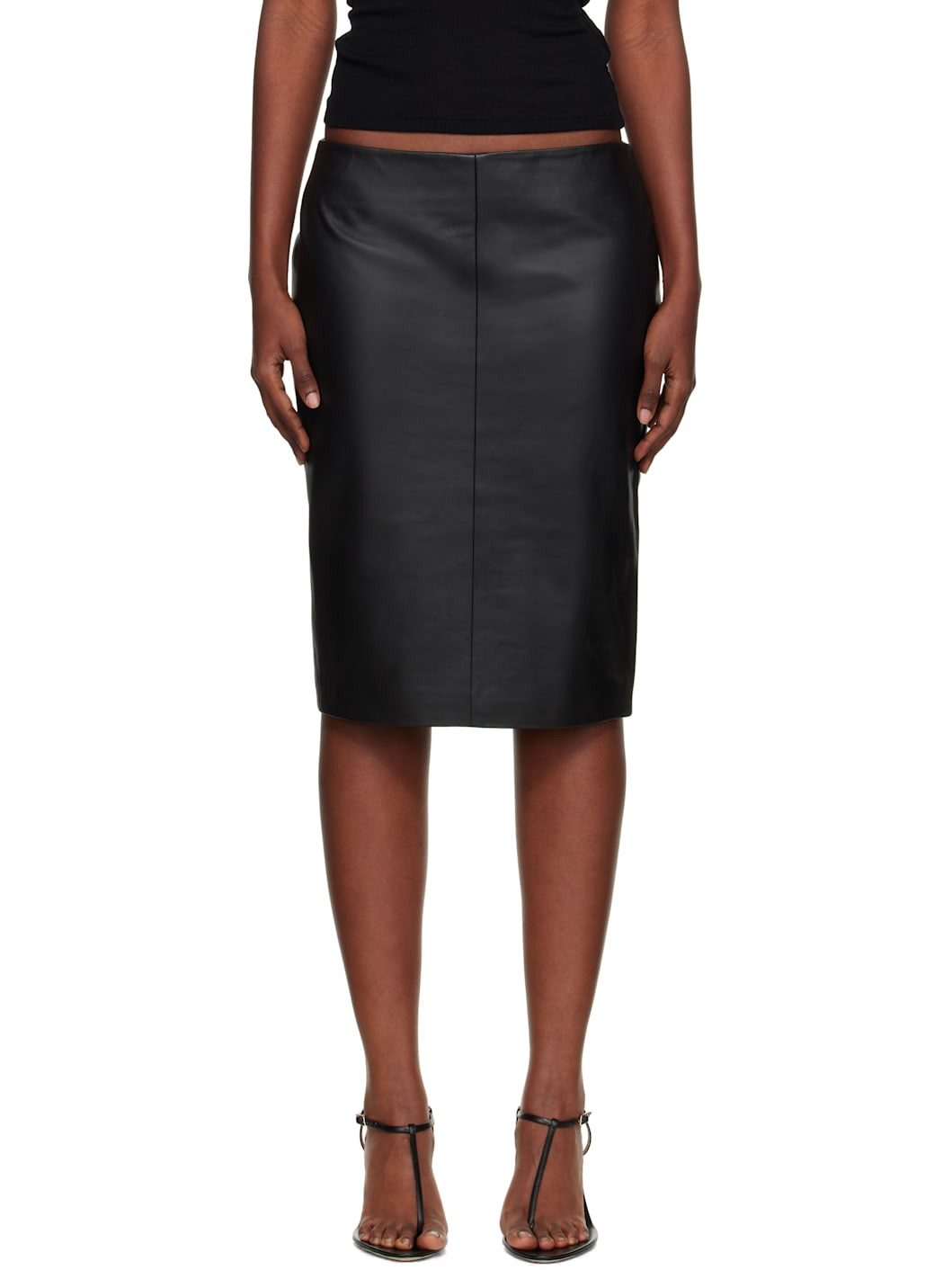 Black Pencil Leather Midi Skirt