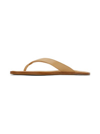 Buffed lambskin sandals in beige. · Thong-style strap at open square toe · Logo embossed at padded leather footbed · Nubuck sole with rubber injection Supplier color: Porcini Upper: lambskin. Sole: leather, rubber. Made in Portugal 241132F124009