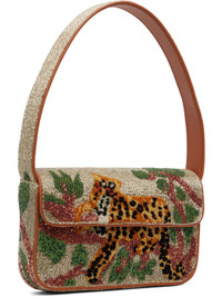 Hand-beaded shoulder bag. · Beaded graphics and faux-leather trim throughout · Fixed shoulder strap · Boucle graphic at face · Patch pocket and beaded logo at back face · Magnetic press-stud flap · Zip pocket at interior · Satin lining · H6.25" x W10" x D2" Supplier color: Jungle leopard Glass, synthetic. Made in India 251386F048052