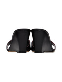 Grained leather slip-on heeled sandals in black. · Open square toe · Logo embossed at padded leather footbed · Rubber injection at covered wedge heel · Nubuck outsole · Heel: H3 in Supplier color: Black