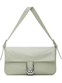 Crinkled and polished leather shoulder bag. · Adjustable shoulder strap · Logo embossed at back face · Pin-buckle hardware at magnetic press-stud flap · Zip pocket at suede interior · Logo-engraved silver-tone hardware · H5" x W9.75" x D1.5" Supplier color: Pale jade Leather. Made in Viet Nam 251386F048077