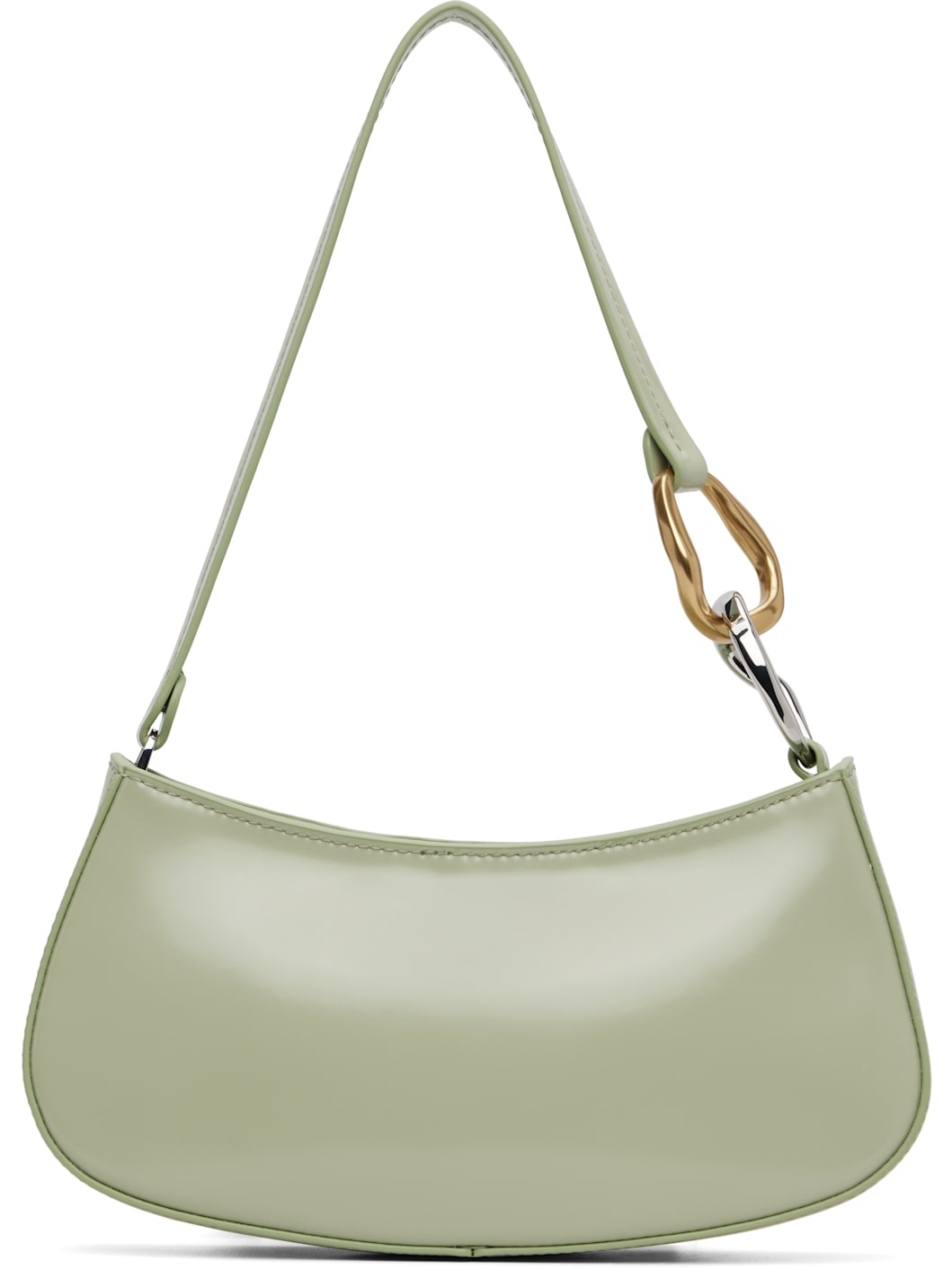 Polished leather shoulder bag. · Curb chain hardware at fixed shoulder strap · Logo embossed at back face · Zip closure · Zip pocket and patch pocket at interior · Suede lining · Silver-tone and gold-tone hardware · H4.25" x W9.5" x D2" Supplier color: Pale jade Leather. Made in Cambodia 251386F048062