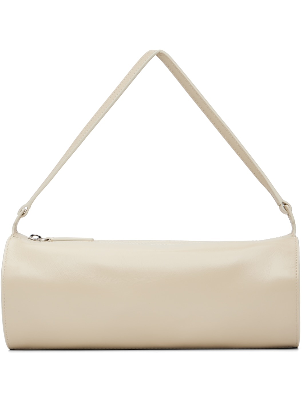 Crinkled buffed leather shoulder bag. · Fixed shoulder strap · Logo embossed at side · Zip closure · Zip pocket at interior · Faille lining · H4.5" x W11.25" x D4.5" Supplier color: Cream Leather. Made in Cambodia 251386F048064
