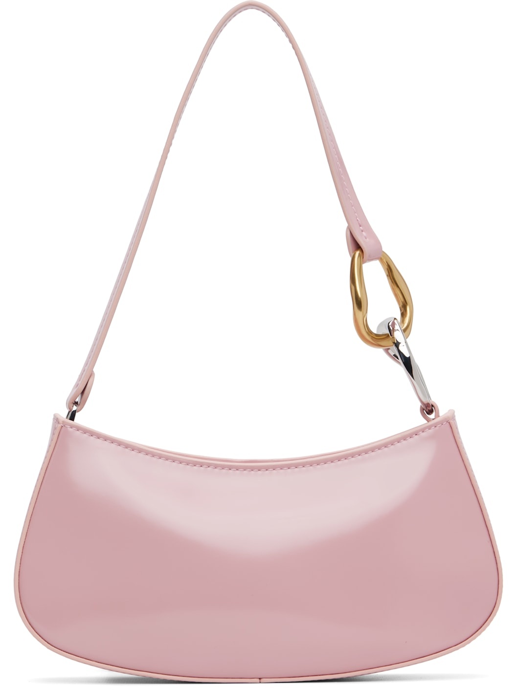 Polished calfskin shoulder bag. · Curb chain hardware at fixed shoulder strap · Logo embossed at back face · Zip closure · Zip pocket and patch pocket at interior · Suede lining · Silver-tone and gold-tone hardware · H4.25" x W9.5" x D2" Supplier color: Cherry blossom Calfskin. Made in Cambodia 251386F048083