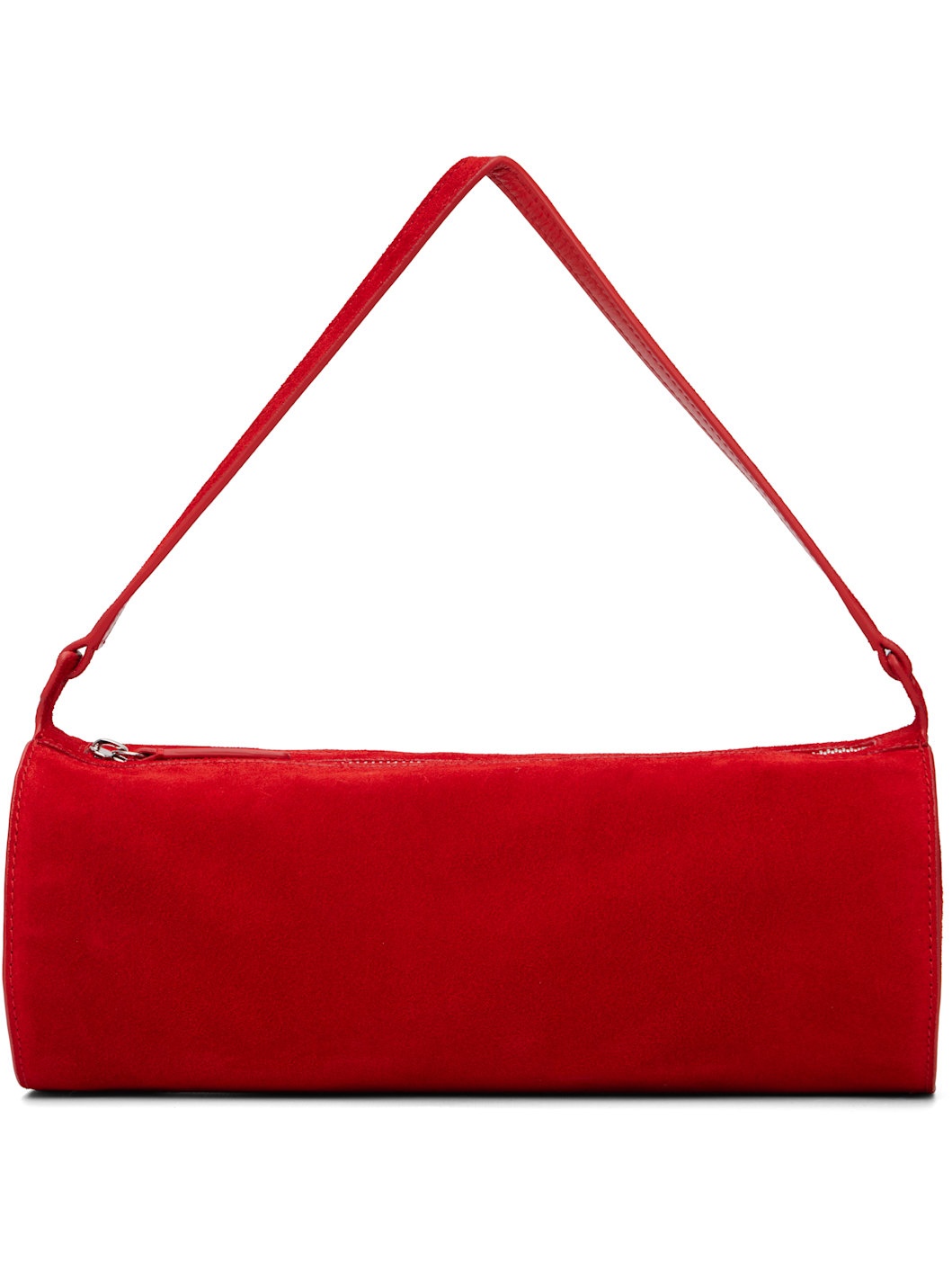 Suede shoulder bag. · Fixed shoulder strap · Logo embossed at side · Zip closure · Zip pocket at interior · Faille lining · H4.5" x W11.25" x D4.5" Supplier color: Red rose Leather. Made in Cambodia 251386F048065