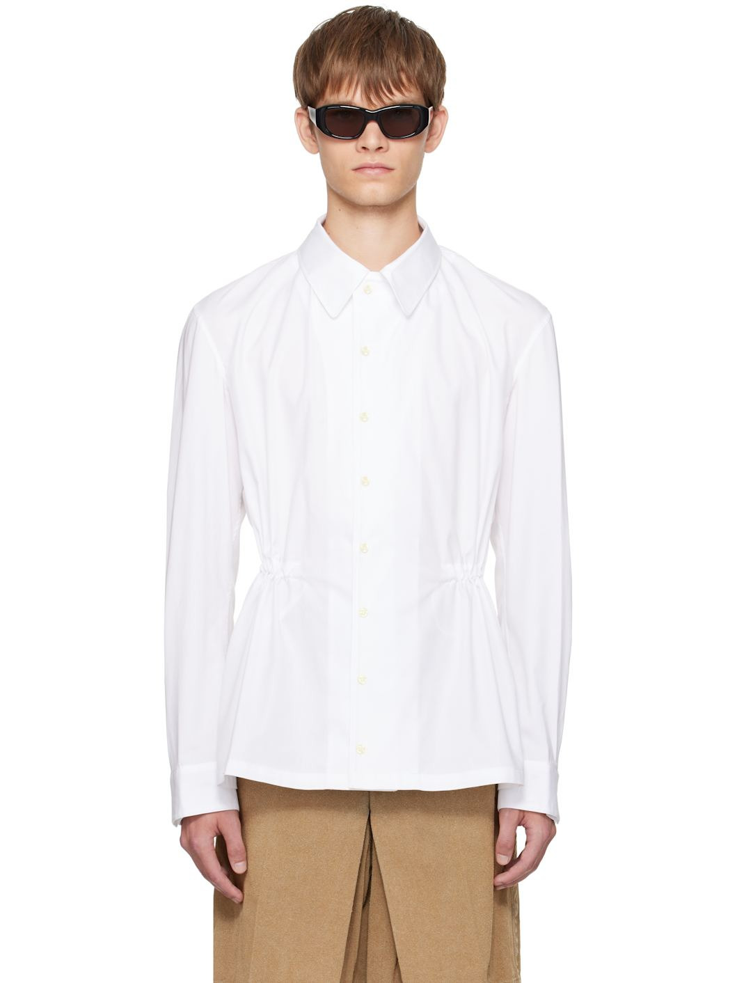 Cotton oxford cloth shirt. · Spread collar · Button closure · Buttoned barrel cuffs · Logo embroidered at cuff · Self-tie drawstring at interior waist Supplier color: White 100% cotton. Made in United Kingdom 252300M192001