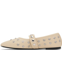 Buffed faux-leather Mary Jane-style ballerina flats in beige. · Press-stud hardware throughout · Press-stud strap at vamp · Moisture-wicking recycled jersey and microfiber lining · Logo patch at padded footbed · Rubber heel · Faux-leather sole Made from cruelty-free, non-animal materials. Supplier color: Vanilla Synthetic. Made in Italy 251471F118002