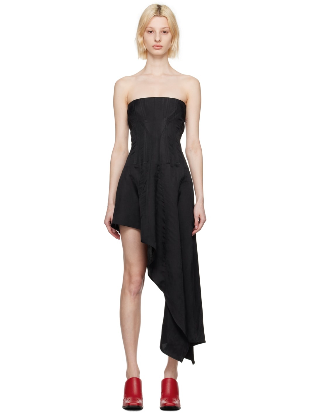 Viscose- and linen-blend twill midi dress. FSC- and CanopyStyle Audit-certified. · Concealed boning throughout · Straight neck · Asymmetric hem · Concealed zip closure at back · Adjustable strap at interior Made from cruelty-free, non-animal materials. Supplier color: Black