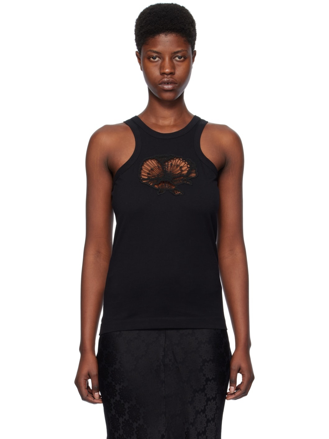 Cotton jersey tank top. · Rib knit crewneck and armscyes · Cutout and graphic embroidered at chest Made from cruelty-free, non-animal materials. Supplier color: Black Body: 100% cotton. Trim: 41% viscose, 31% cotton, 28% polyester. Made in Portugal 241471F111004