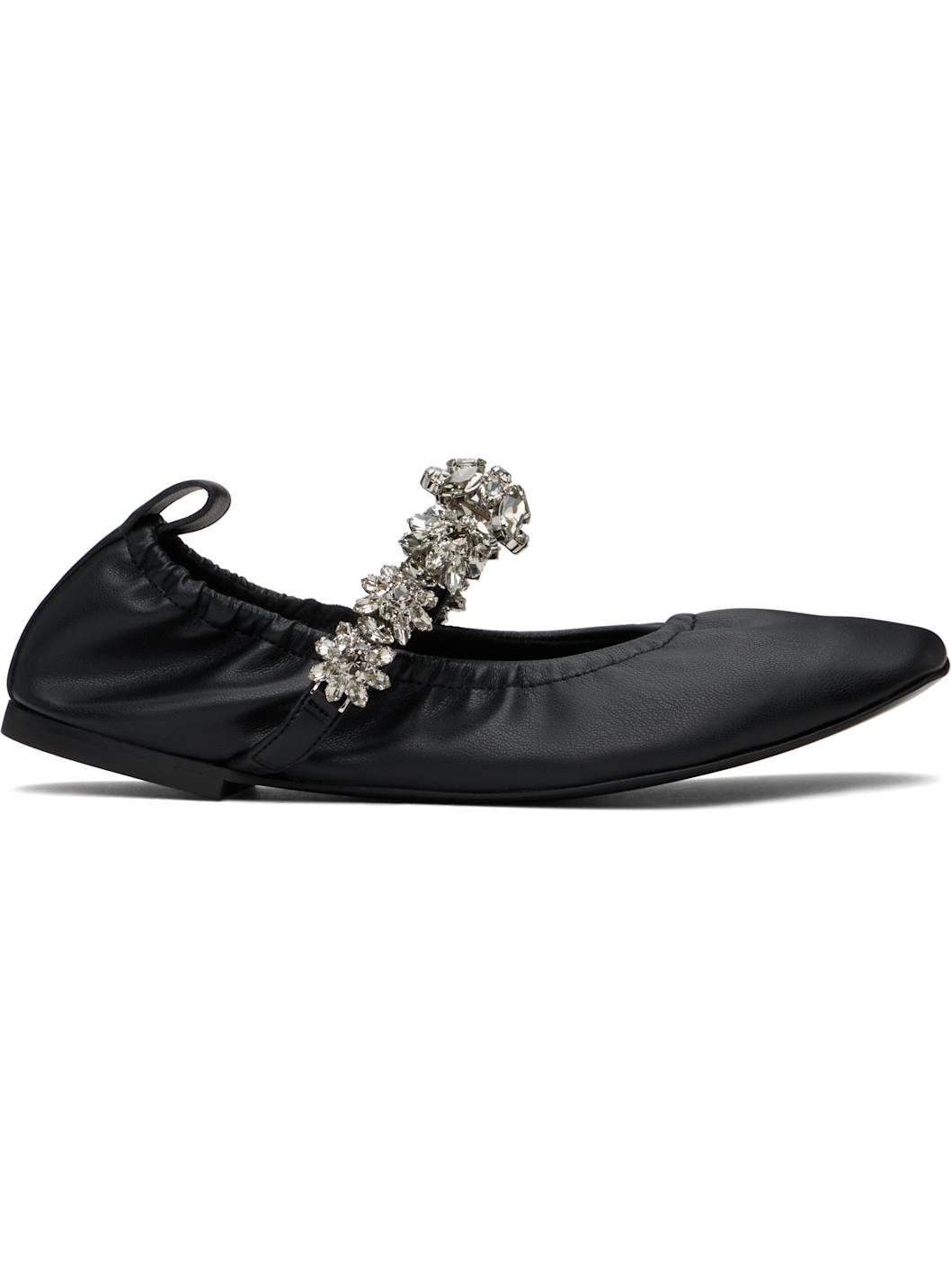 Black Elsa Crystal Flowers Ballerina Flats