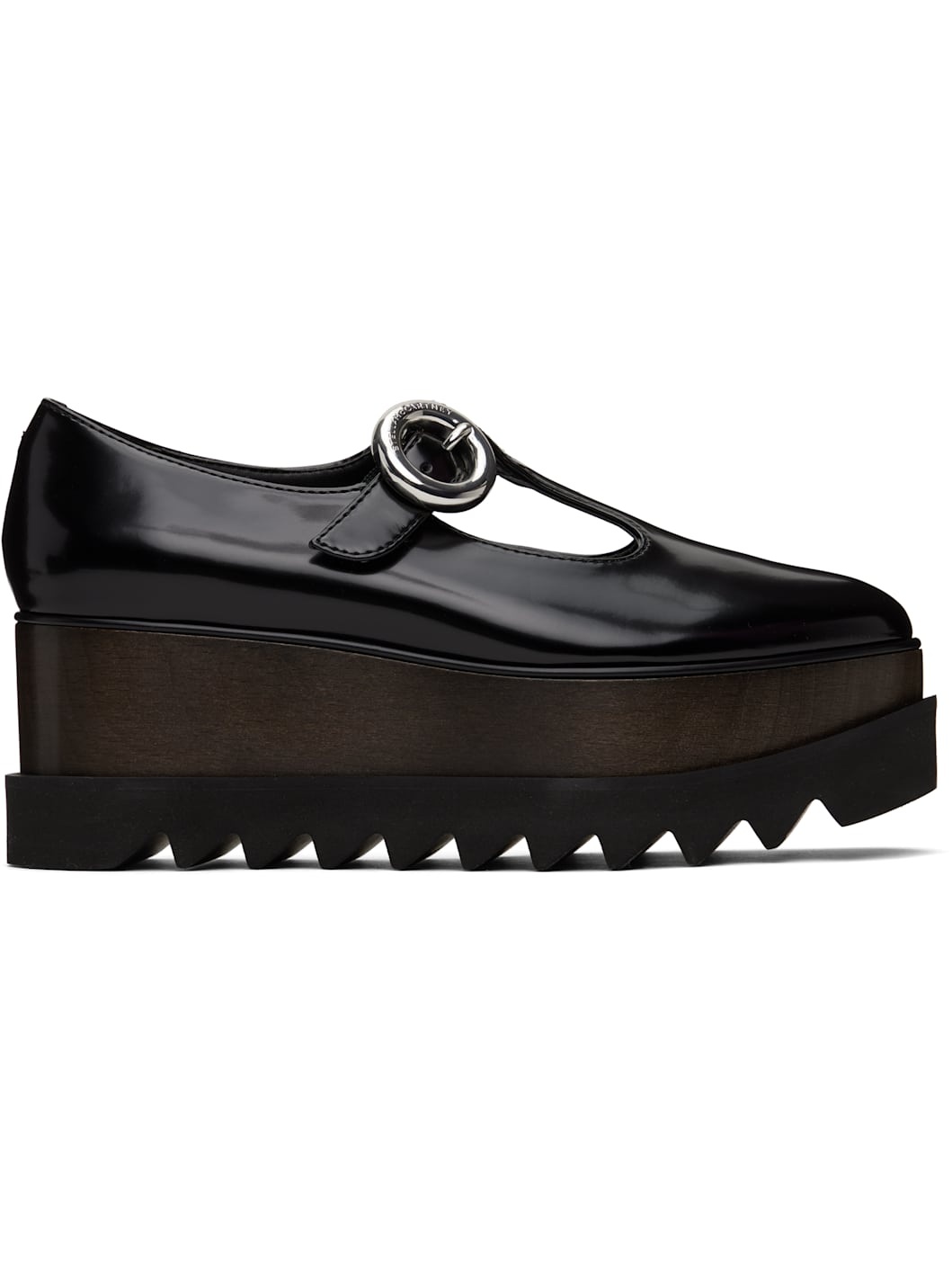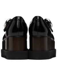 Handcrafted polished faux-leather Mary Jane-style derbys in black. · Cutouts and pin-buckle strap at vamp · Faux-suede and buffed faux-leather lining · FSC-certified wood platform midsole · Treaded foam rubber sole · Logo-engraved silver-tone hardware · Platform: H2" · Heel: H2.75" Made from cruelty-free, non-animal materials. Supplier color: Black Upper: synthetic. Sole: wood, rubber. Made in Italy 251471F120006
