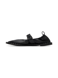 Buffed faux-leather ballerina flats in black. · Pin-buckle strap with graphic hardware at vamp · Elasticized collar · Pull-loop at heel collar · Recycled faux-suede lining · Studs at welt · Textured bio-based rubber sole Made from cruelty-free, non-animal materials. Supplier color: Black Upper: synthetic. Sole: rubber. Made in Italy 242471F118000
