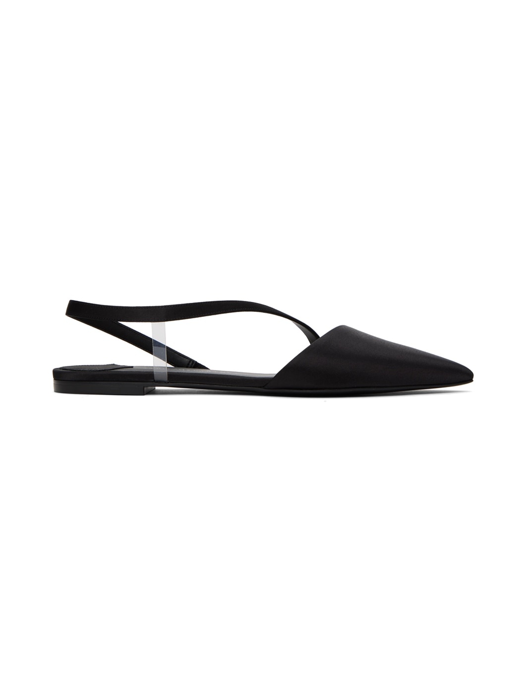 Satin slippers in black. · Pointed toe · Partially elasticized slingback strap · Rubber heel · Faux-leather sole Made from cruelty-free, non-animal materials. Supplier color: Black/Crystal Upper: textile. Sole: rubber, synthetic. Made in Italy 241471F121003