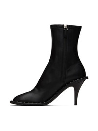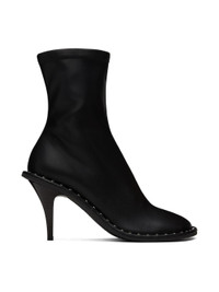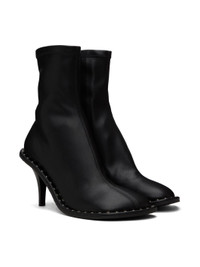 Ankle-high grained faux-leather heels in black. · Zip closure at inner side · RIvets at welt · Stiletto heel with rubber injection · Textured rubber sole · Heel: H3 in Made from cruelty-free, non-animal materials. Supplier color: Black Upper: synthetic. Sole: rubber. Made in Italy 232471F122007