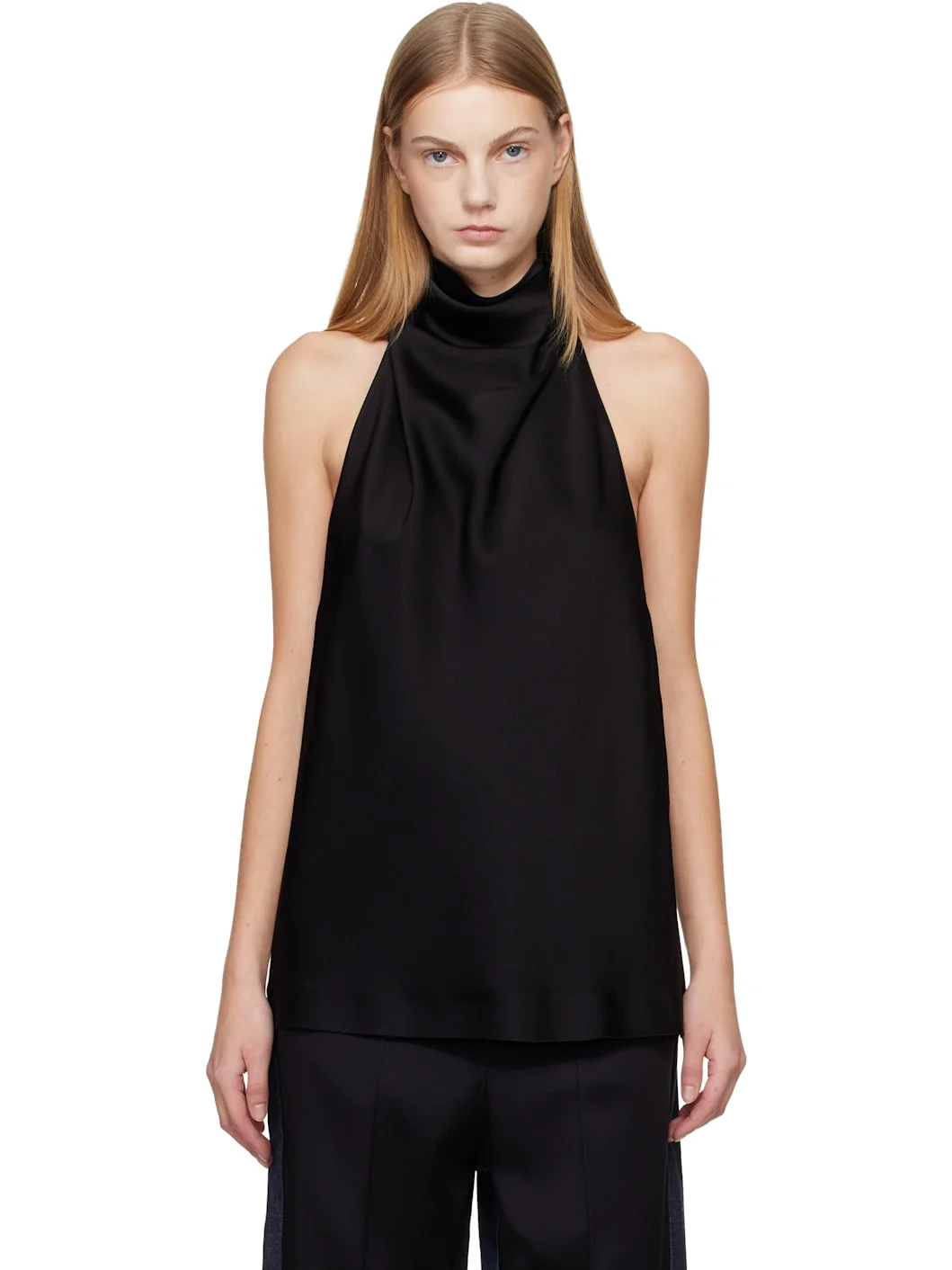 Satin top. · Draping throughout · Hook-eye fastening at halter neck · Low back Made from cruelty-free, non-animal materials. Supplier color: Black 73% acetate, 27% viscose. Made in Italy 261471F111007