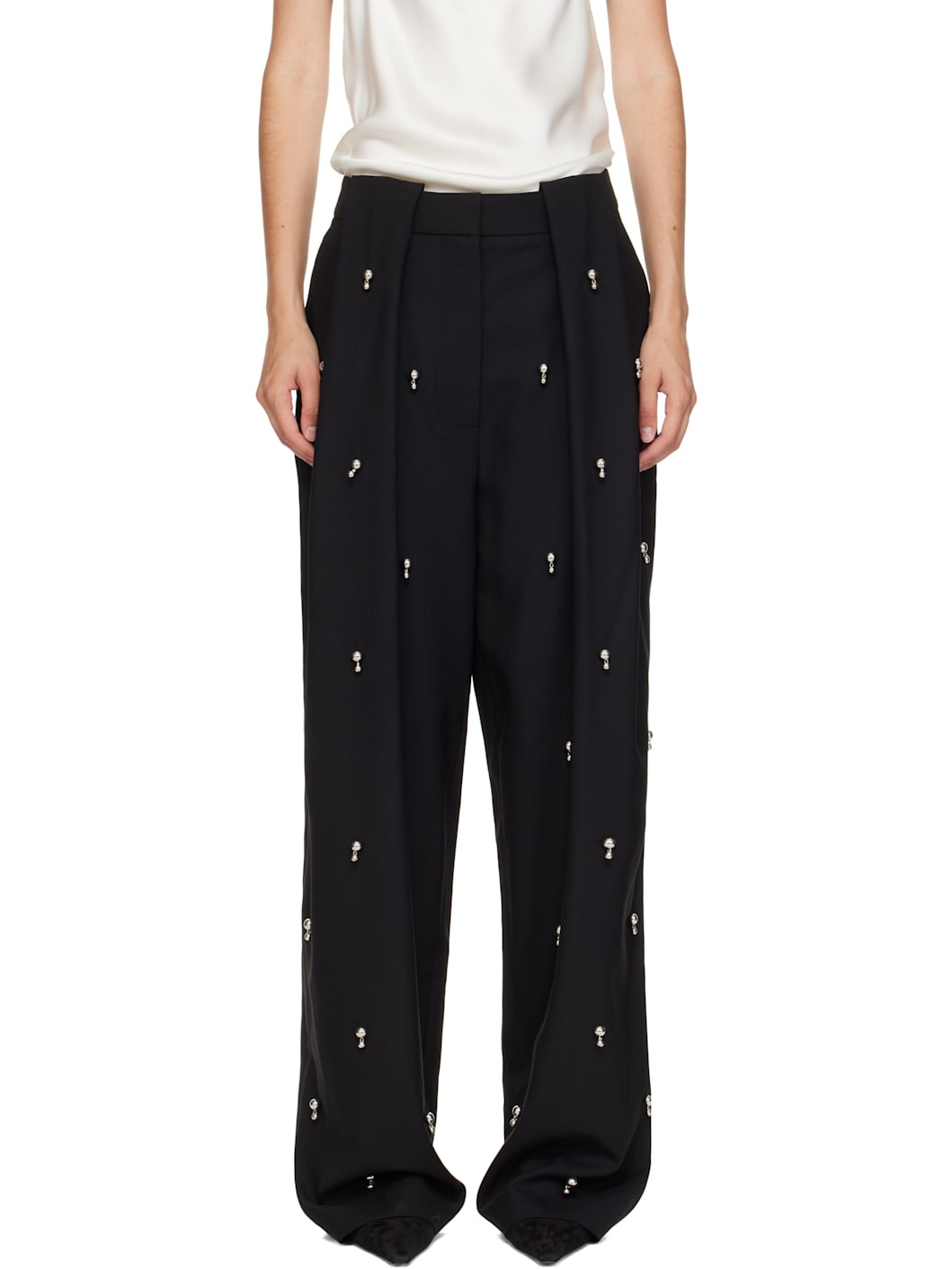 Wool twill trousers. · Graphic hardware throughout · Belt loops · Three-pocket styling · Zip fly · Box pleats at front waist · Unlined · Silver-tone hardware Made from cruelty-free materials. Supplier color: Black 100% wool. Made in Italy 252471F087001