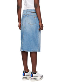 Non-stretch denim skirt. Fading throughout. · Belt loops · Five-pocket styling · Zip-fly · Curb chain detailing at front pockets · Central vent at front hem · Faux-leather logo patch at back waistband · Logo embroidered at back pocket · Contrast stitching in tan Made from cruelty-free, non-animal materials. Supplier color: Vintage blue 100% cotton. Made in Portugal 241471F092002
