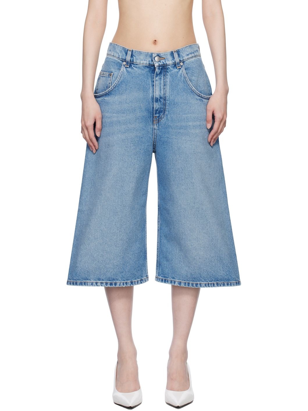 Non-stretch denim shorts. Fading and whiskering throughout. · Belt loops · Four-pocket styling · Zip fly · Logo patch at back waistband · Logo-engraved silver-tone hardware · Contrast stitching in orange Made from cruelty-free, non-animal materials. Supplier color: Medium vintage Body: 100% cotton. Lining: 50% cotton, 50% polyester. Made in Italy 251471F069002