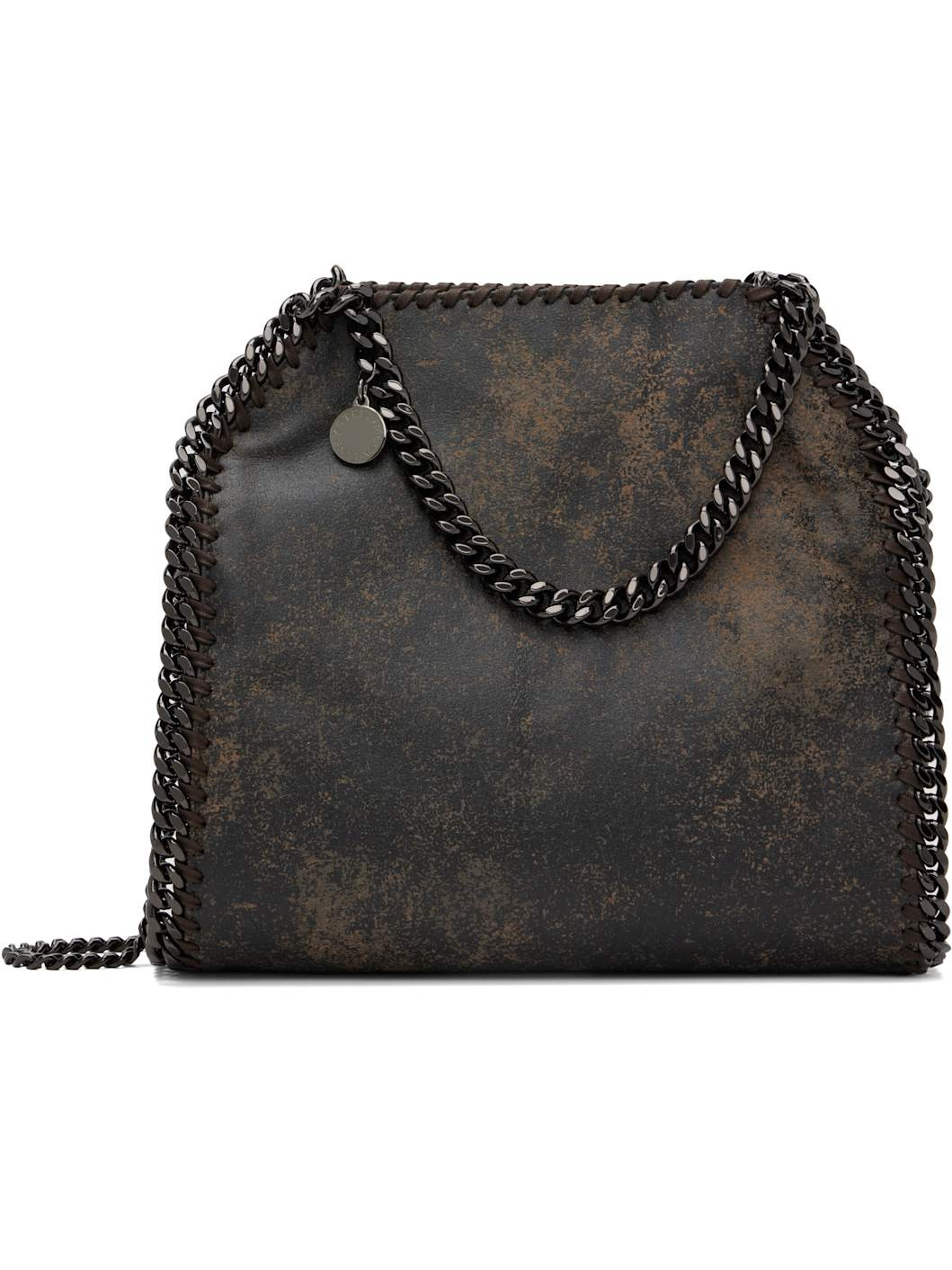 Distressed faux-leather shoulder bag. · Whipstitching and chain trim throughout · Curb chain carry handles and shoulder strap · Logo disc at strap base · Magnetic press-stud closure · Patch pocket at interior · Logo-patterned textile lining · Black hardware · H10.5" x W10" x D4" Made from cruelty-free, non-animal materials. Supplier color: Mud Synthetic. Made in Italy 252471F048019