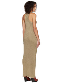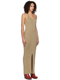 Rib knit viscose and lurex-blend dress. Metallic thread detailing throughout. · Scoop neck · Central vent at front hem · Racer back Made from cruelty-free, non-animal materials. Supplier color: Gold 77% viscose, 23% lurex. Made in Italy 231471F055008