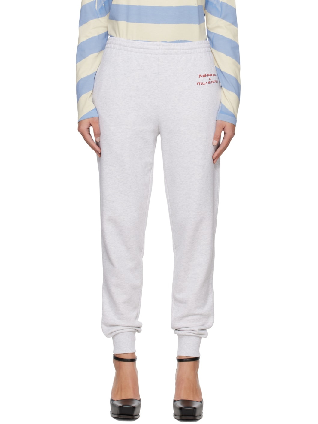 French terry lounge pants. · Concealed drawstring at elasticized waistband · Three-pocket styling · Logo printed at front · Rib knit cuffs · Chenille graphic patch at back Made from cruelty-free, non-animal materials. Part of the Stella McCartney Yoshitomo Nara capsule collection. Supplier color: Gray melange Body: 100% cotton. Trim: 98% cotton, 2% elastane. Made in Portugal 231471F086003