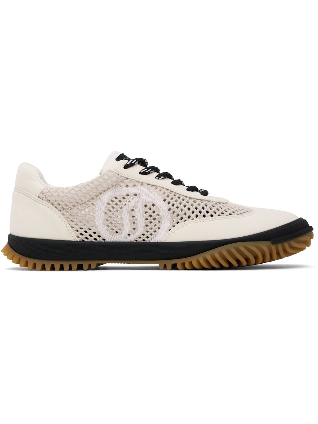 Off-White & Beige S-Wave Sport Mesh Paneled Sneakers