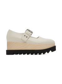 Buffed faux-leather Mary Jane-style loafers in off-white. · Pin-buckle strap with graphic hardware at vamp · Faux-suede lining · FSC-certified wood platform midsole · Treaded micro-rubber sole · Platform: H1.5" · Heel: H2.5" Made from cruelty-free, non-animal materials. Supplier color: Stone Upper: synthetic. Sole: wood, rubber. Made in Italy 242471F118002