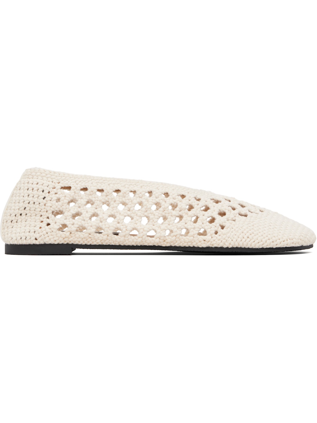 Crocheted cotton loafers in off-white. · Square toe · Rubber heel and sole Made from cruelty-free, non-animal materials. Supplier color: Ivory Upper: textile. Sole: rubber. Made in Italy 252471F121000