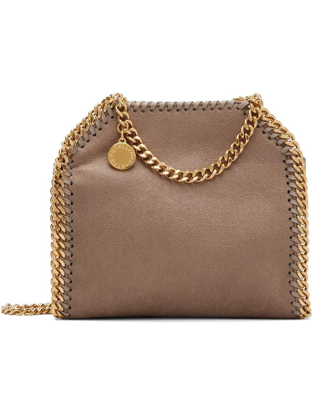 Faux-suede shoulder bag. · Whipstitching and chain trim throughout · Curb chain carry handles and shoulder strap · Logo disc at strap base · Magnetic press-stud closure · Patch pocket at interior · Logo-patterned textile lining · Gold-tone hardware · H7" x W6" x D2.5" Made from cruelty-free, non-animal materials. Supplier color: Moss Synthetic. Made in Italy 252471F048014