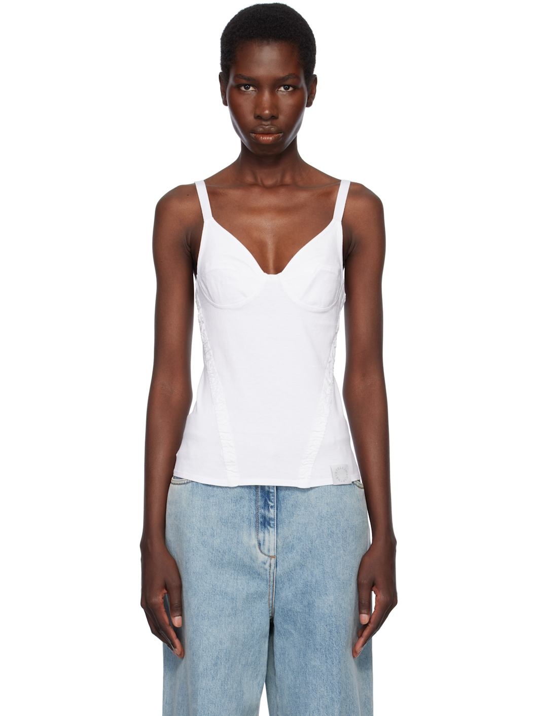 Cotton jersey top. · Sweetheart neck · Ruched canvas trim at front and back · Logo patch at front hem · Adjustable shoulder straps Made from cruelty-free, non-animal materials. Supplier color: White 100% cotton. Made in Portugal 251471F111002