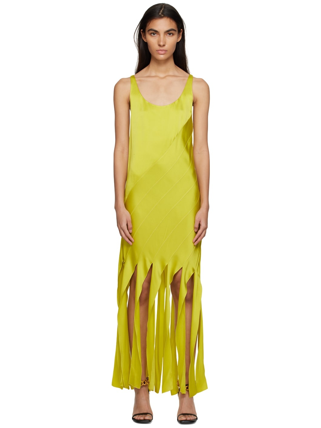 Acetate and viscose-blend satin dress. · Paneled construction · Scoop neck · Fringed detailing at hem · Zip closure at side seam · Partial crepe lining Made from cruelty-free, non-animal materials. Supplier color: Lime Body: 64% acetate, 36% viscose. Lining: 73% acetate, 27% silk. Made in Poland 231471F055004