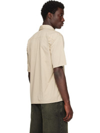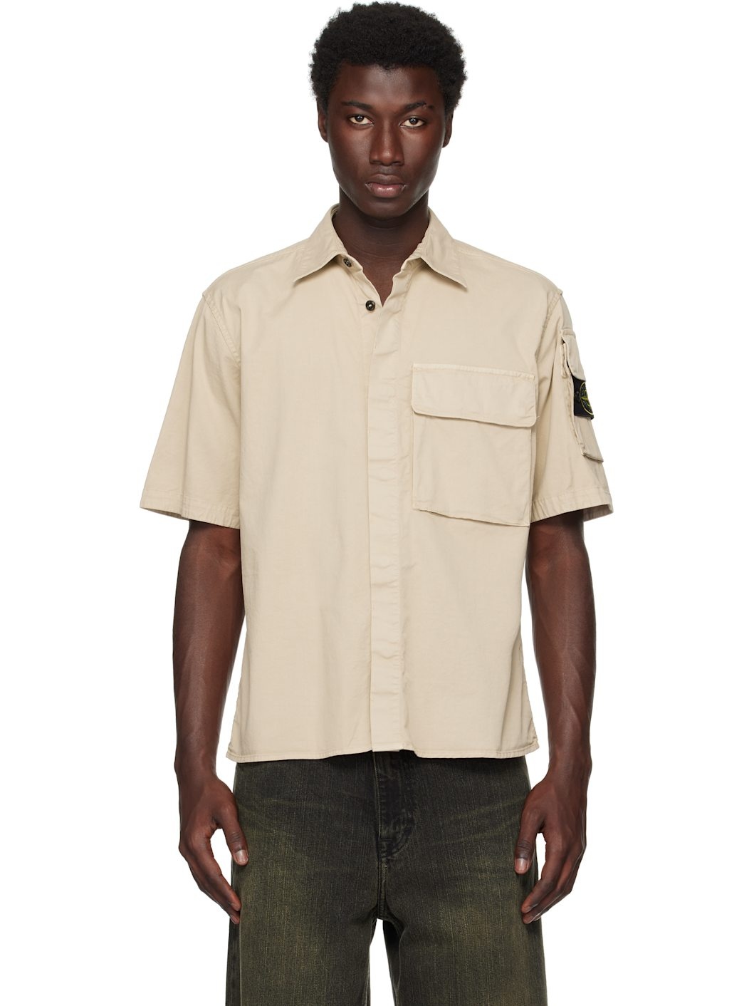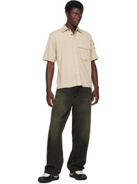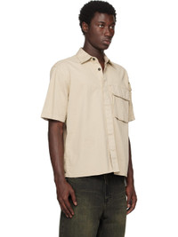 Mercerized stretch Supima® cotton twill shirt. · Garment-dyed · Spread collar · Concealed button closure · Flap pocket at chest · Utility pocket with detachable logo patch at sleeve Supplier color: Desert 97% cotton, 3% elastane. Made in Tunisia 252828M192027