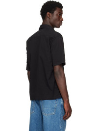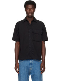 Garment-dyed stretch cotton twill shirt. · Spread collar · Button up closure · Flap pockets at chest and sleeve · Detachable felted logo patch at sleeve · Logo-engraved black hardware Supplier color: Black 97% cotton, 3% elastane. Made in Tunisia 252828M192028