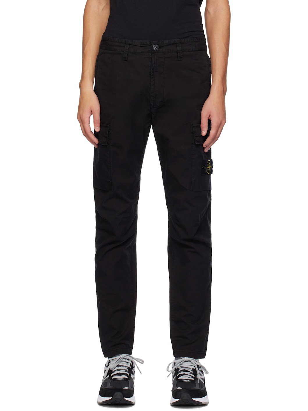 Tapered garment-dyed stretch Supima® cotton twill cargo pants. · Belt loops · Three-pocket styling · Zip-fly · Cargo pockets at front · Detachable felted logo patch at pocket · Tucks at knees Supplier color: Black Supplier code: 811530410