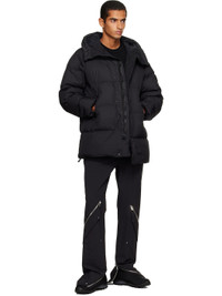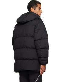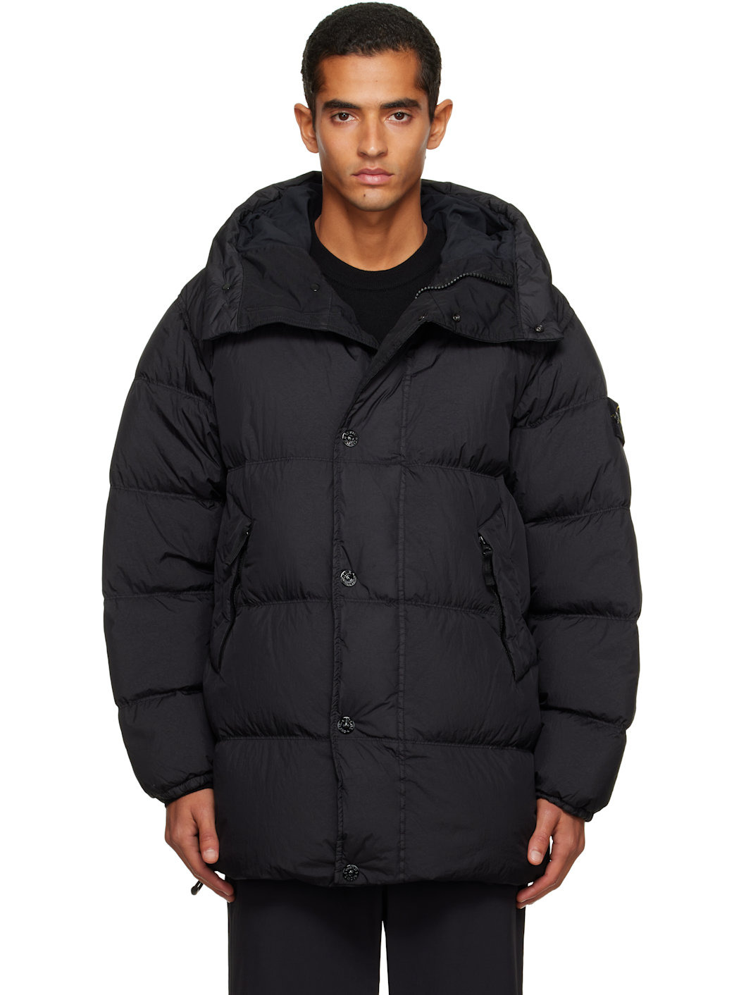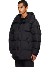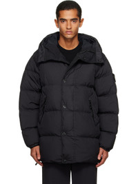 Down-filled, quilted, and crinkled recycled nylon taffeta jacket. · RDS-certified down · Garment-dyed · Wind- and water-resistant · Bungee-style drawstring at hood and hem · Concealed two-way zip closure · Press-stud placket · Zip pockets at waist · Detachable felted logo patch at sleeve · Elasticized cuffs · Patch pocket at resin-coated interior · Full taffeta lining Supplier color: Black Fill 1: 80% duck down, 20% duck feather. Fill 2: 100% polyester. Body: 100% polyamide. Trim: 100% resin. Lining: 100% polyamide. Made in Indonesia 252828M178029