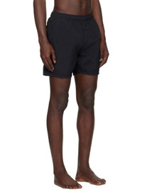 Crinkled ECONYL® regenerated nylon taffeta swim shorts. · Garment-dyed · Concealed drawstring at elasticized waistband · Three-pocket styling · Logo patch at cuff · Embroidered eyelets at back waist · Partial mesh lining Supplier color: Black 100% regenerated nylon. Made in Indonesia 252828M193010