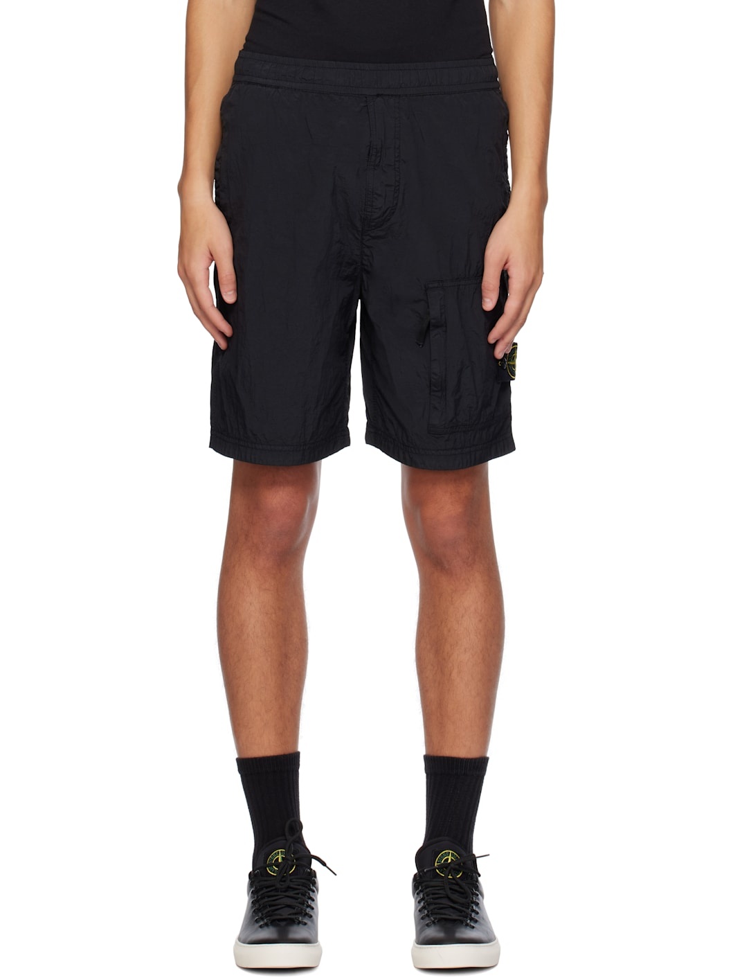 Relaxed-fit crinkled ECONYL® nylon taffeta shorts. Garment-dyed. · Concealed drawstring at elasticized waistband · Two-pocket styling · Detachable felted logo patch at outseam · Zip pocket · Full mesh lining Supplier color: Black Supplier code: 8115L0219