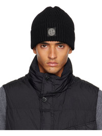 9-gauge rib-knit virgin wool beanie. · RWS-certified wool · Logo patch at face · Rolled brim Supplier color: Black 100% virgin wool. Made in Tunisia 252828M138003