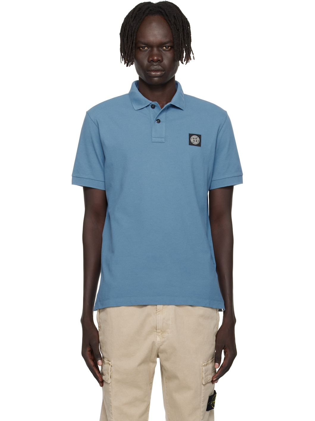 Stretch organic cotton pique polo. · Rib-knit spread collar and cuffs · Two-button placket · Embroidered logo patch at chest · Tennis-tail hem Supplier color: Steel blue 95% organic cotton, 5% elastane. Made in Moldova 252828M212012