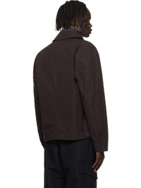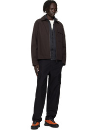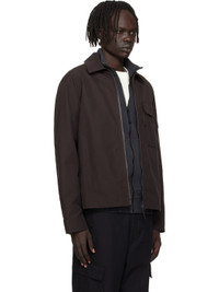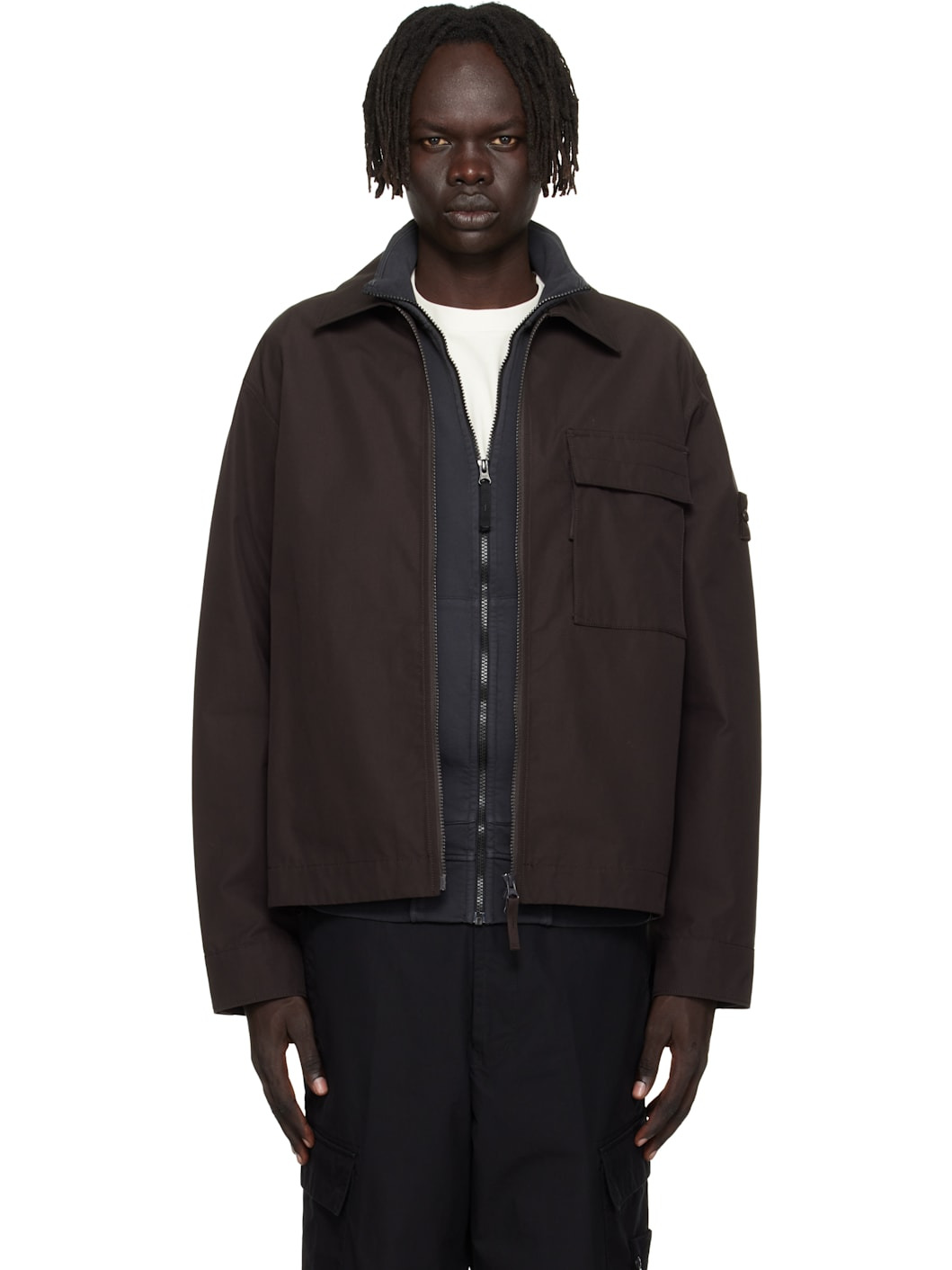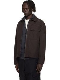 Organic cotton canvas overshirt. · Spread collar · Two-way zip closure · Flap pocket at chest · Seam pockets at waist · Detachable felted logo patch at sleeve · Press-stud barrel cuffs · Adjustable press-stud tabs at back hem Part of the Ghost collection. Supplier color: Dark brown 100% organic cotton. Made in Albania 252828M192009