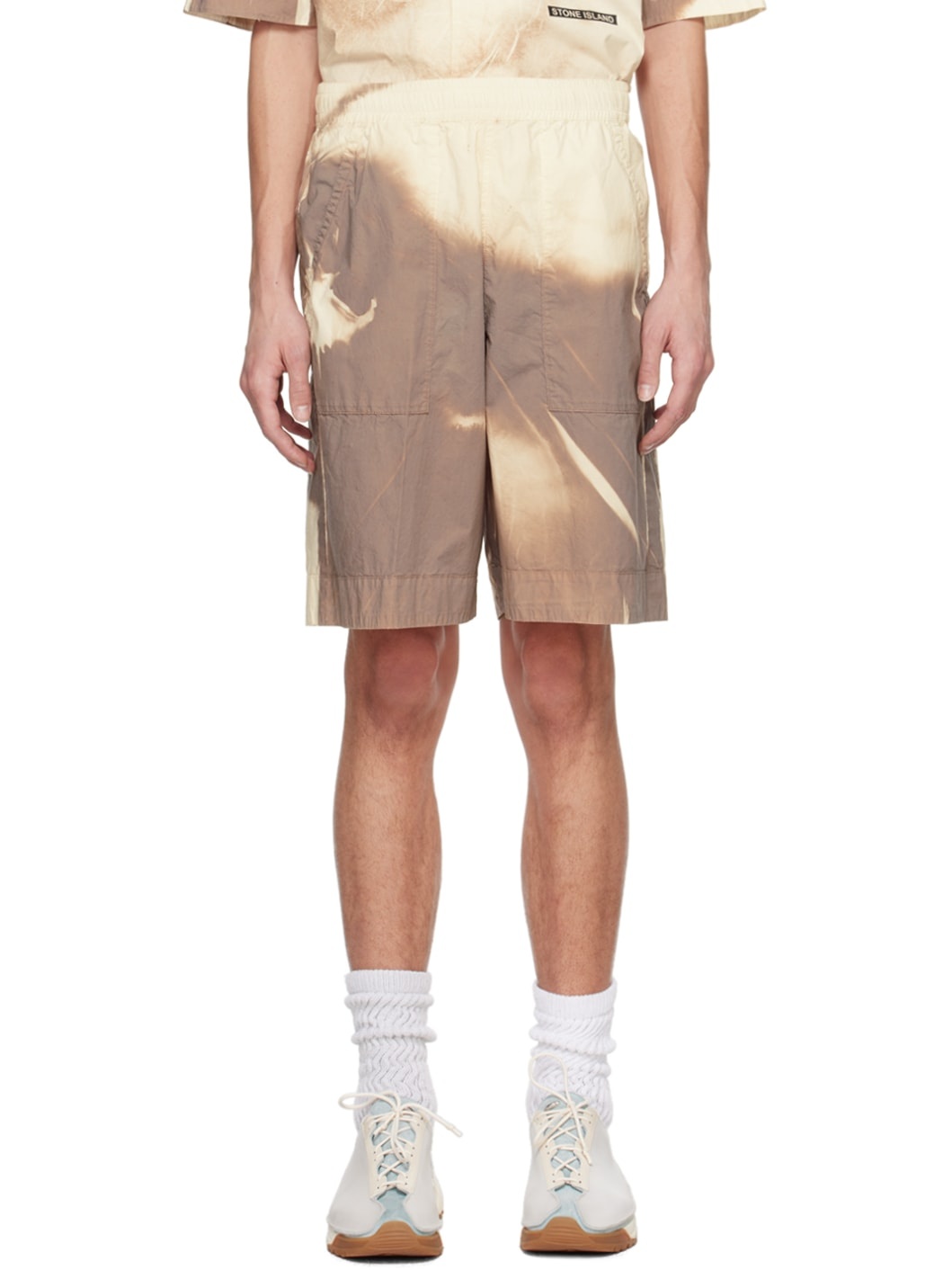 Brown & Off-White Graphic Shorts